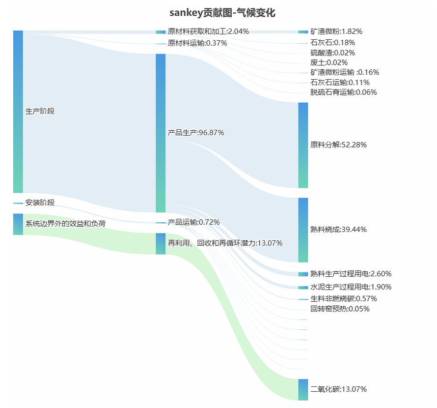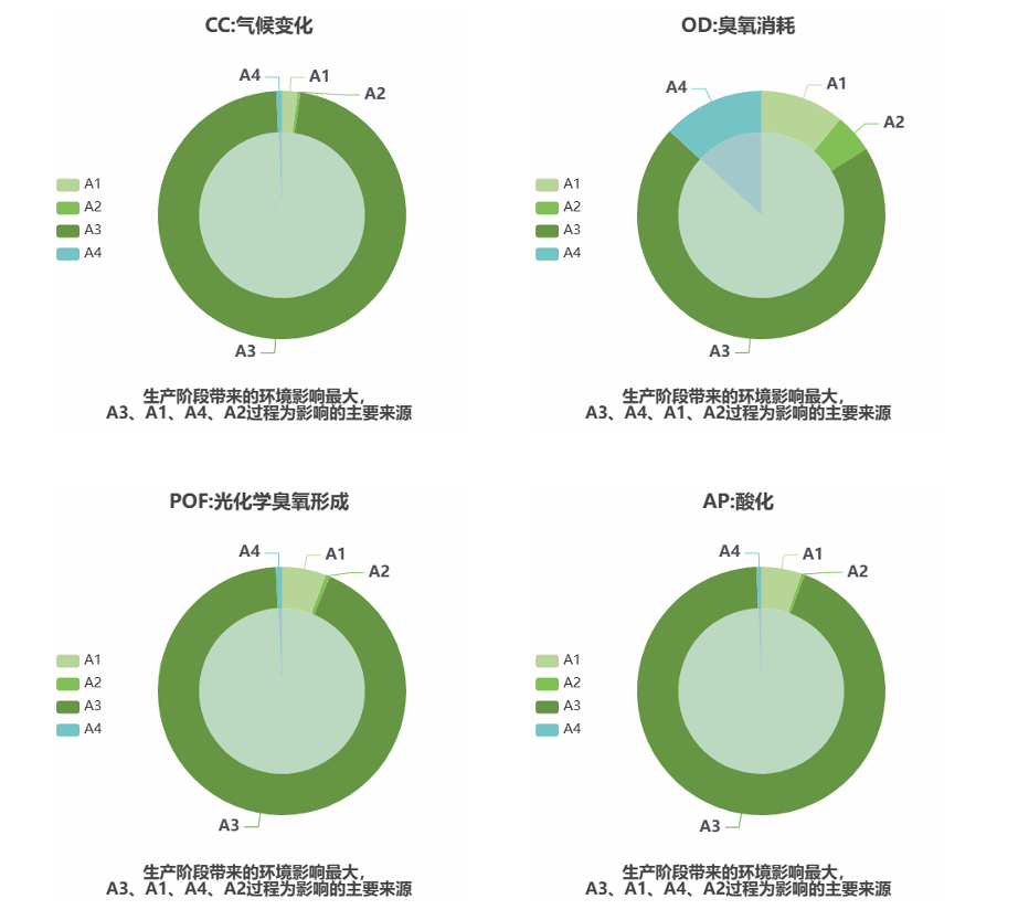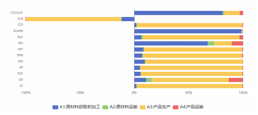 · 堆叠柱状图 (Stacked Bar): 分析不同生命周期阶段(原材料、制造、运输等)的贡献占比。